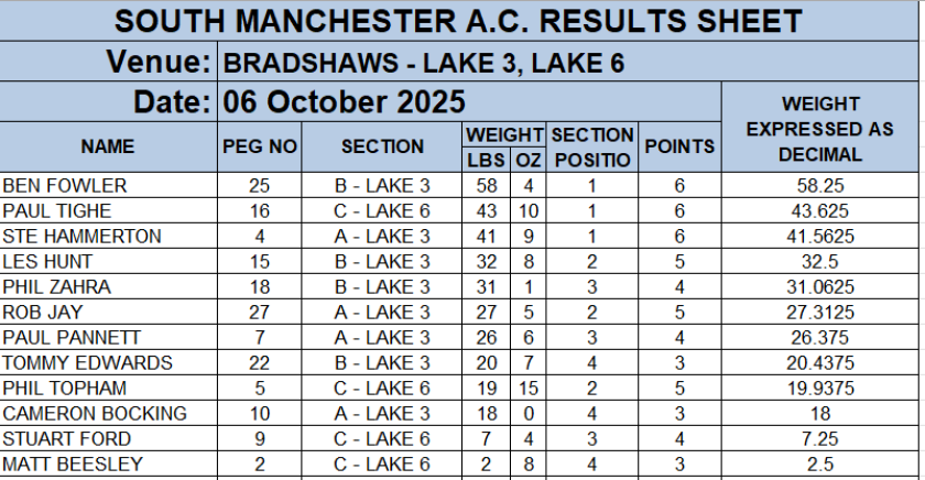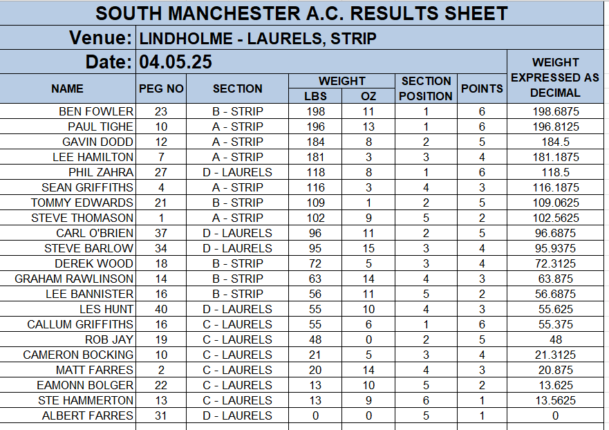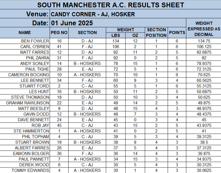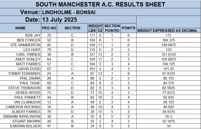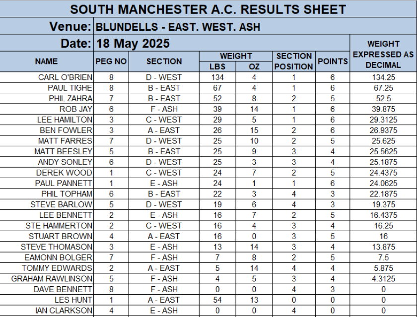 SOUTH MANCHESTER MATCH ANGLING CLUB