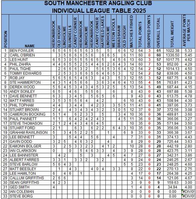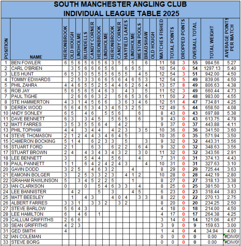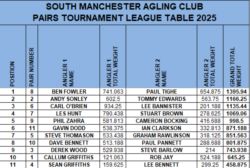 2025 TIER 2 & OVER 55's LEAGUE TABLE